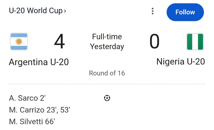 Breaking: Argentina Beat Nigeria 4-0 In FIFA U-20 World Cup